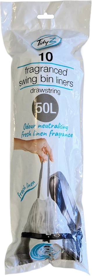 Designed for 50L swing bins, these extra-strong fragranced drawstring liners provide a reliable and hygienic solution for waste disposal. The sturdy construction handles heavier waste without tearing or leaking, while the convenient drawstring makes lifting and tying easy. Infused with a fresh linen scent, these liners help keep bins smelling clean and pleasant. Ideal for use in kitchens, offices, or other areas with medium to large swing bins, they combine practicality, hygiene, and sustainability in one product.