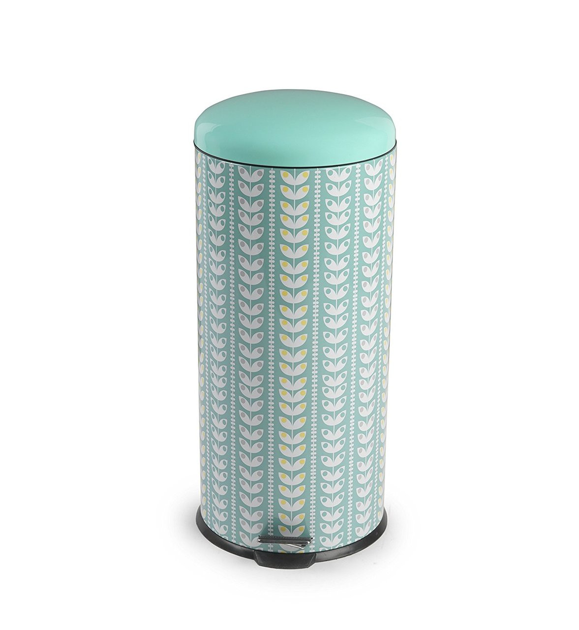 - In a fabulous retro style, this beautifully colourful turquoise and cream bin features an eye catching vertical leaf pattern.
